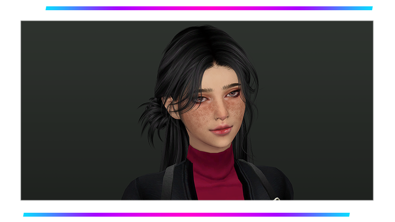 Features: Softer, rounded features with a thin button nose, full and pouty lips, and doe-like eyes. Jas has freckles across the center of her face and along her t-zone, as well as surgical scarring along her chest.